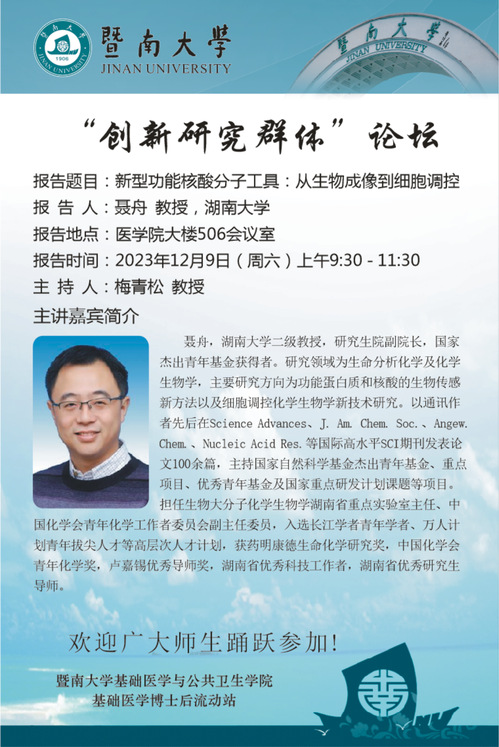 【“创新研究群体”论坛】:新型功能核酸分子工具:从生物成像到细胞调控